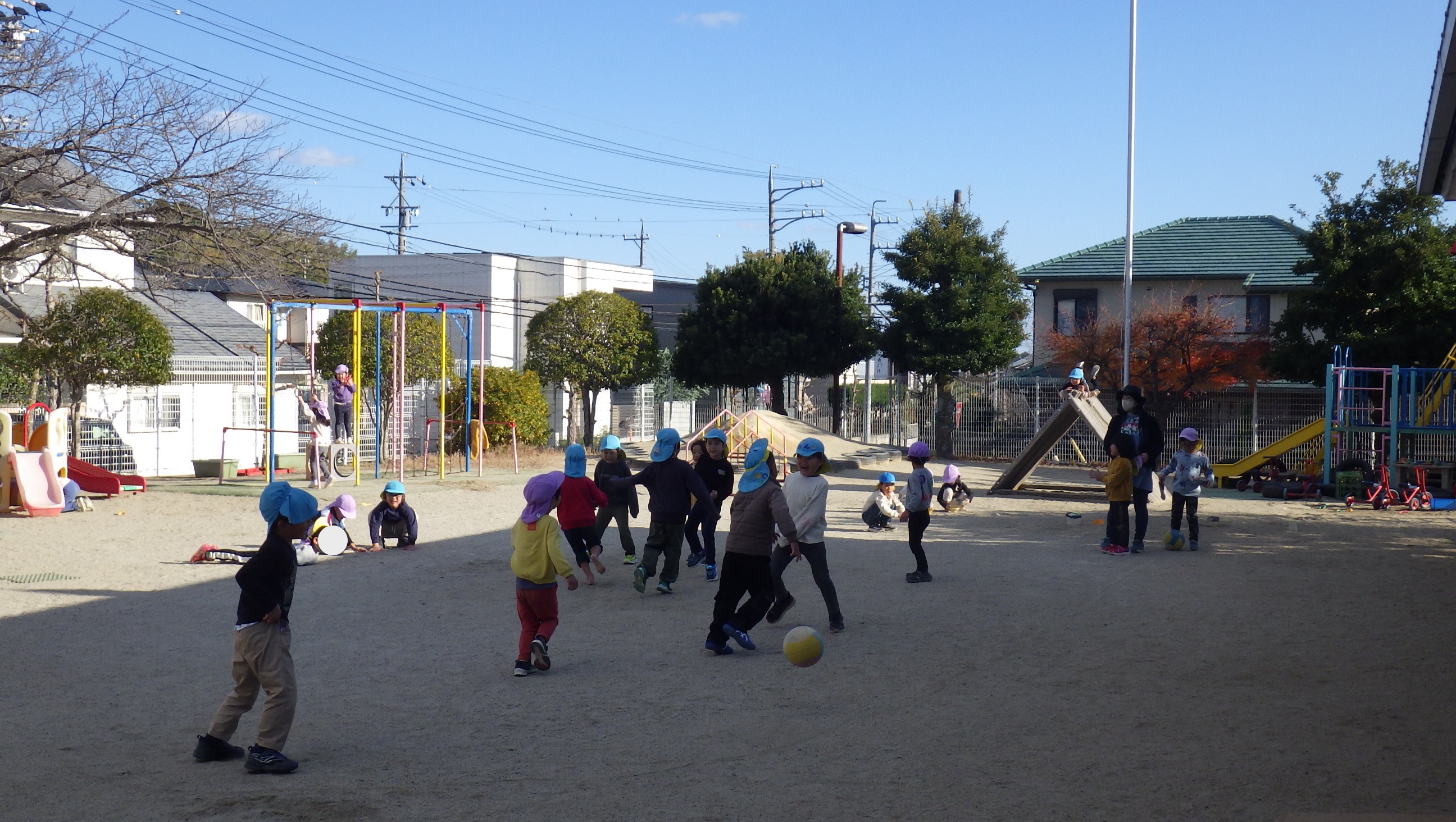 今日は練習はなしでたくさん遊びました!日中は暖かいのでボール遊びなど体を動かしていると上着はいらないくらいでした。年長・年中さん関係なくチームに分かれてボールを蹴り合っていました。お部屋では粘土や箱を使って製作をしていましたよ♪