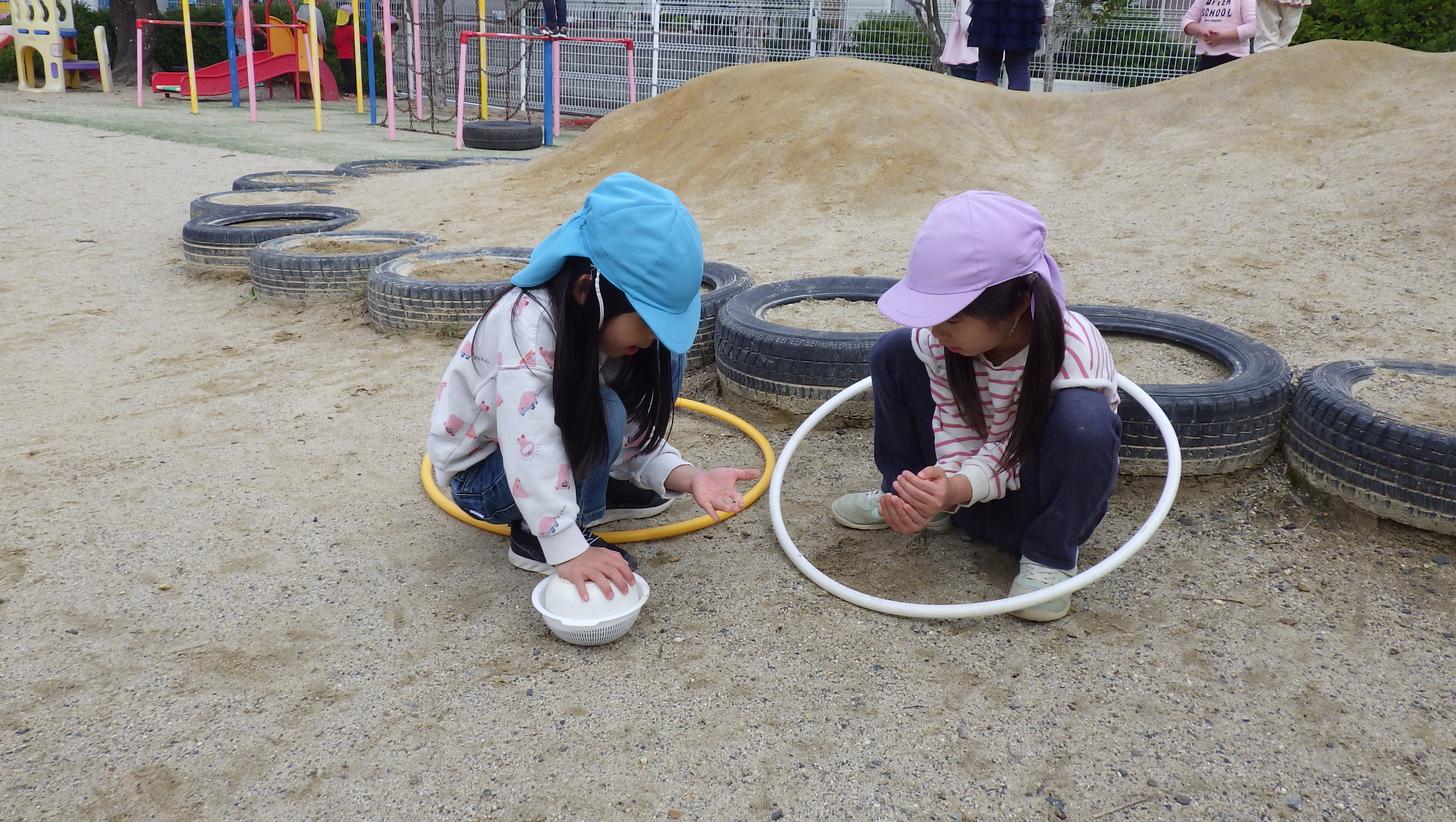 今日は園庭でまったり遊びつつ、発表会の取り組みを年中・年長に分かれてしました。