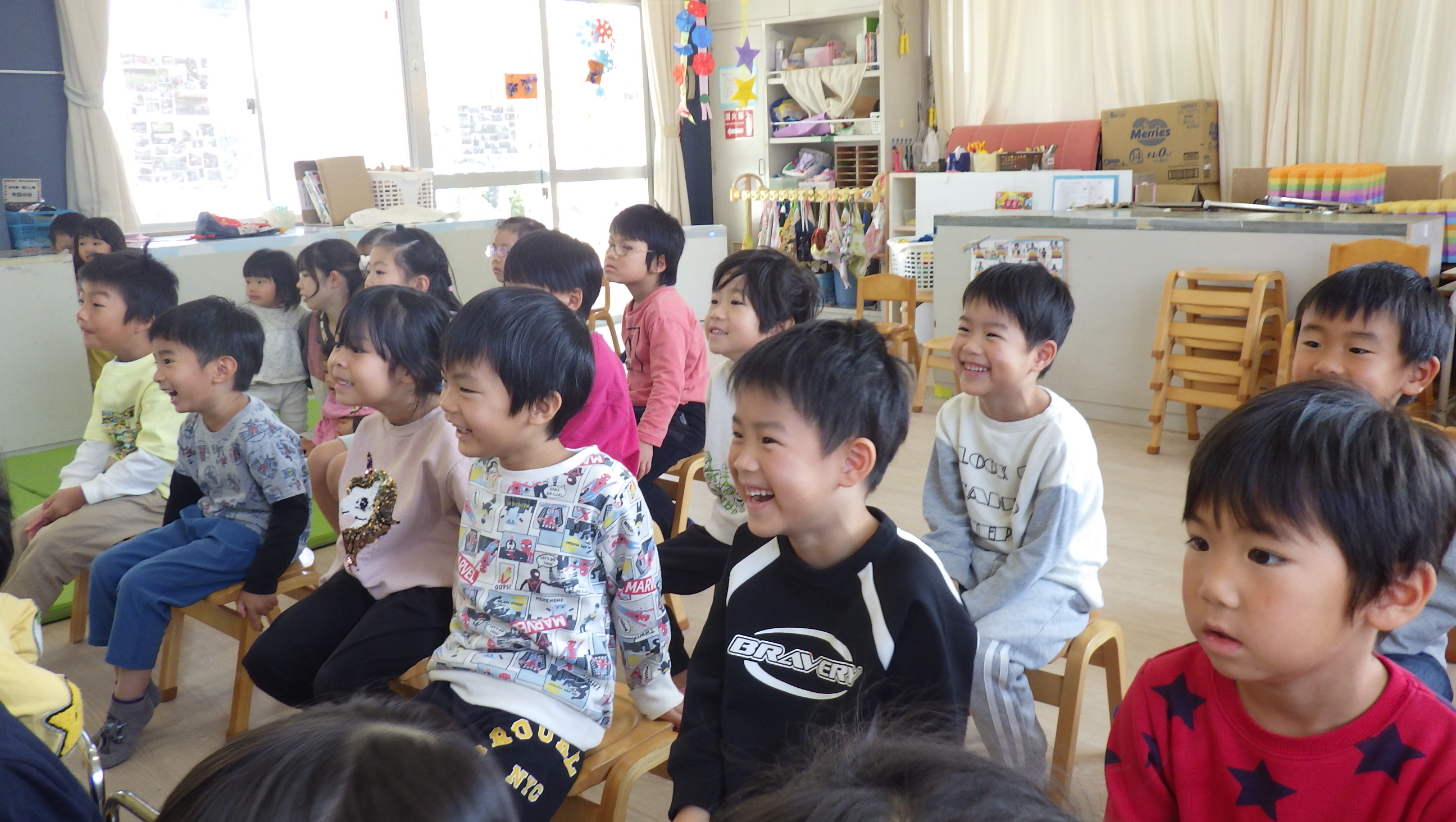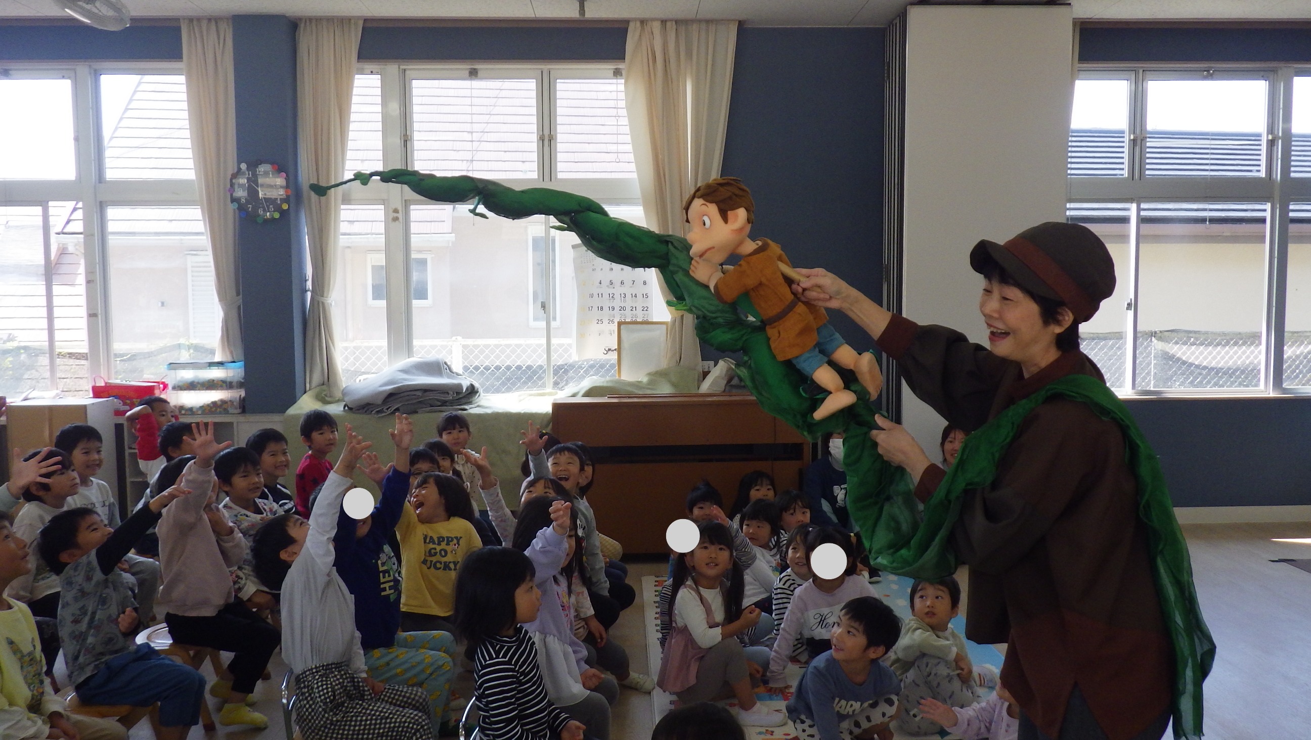 二つとも知っているお話しだったので、「○○だよね」など先のことをつぶやいている子もいました。特にジャックと豆の木は鬼が思っていたより大きくて、豆の木がこどもたちの近くまで伸びてきたのでこどもたちは大喜びでした!