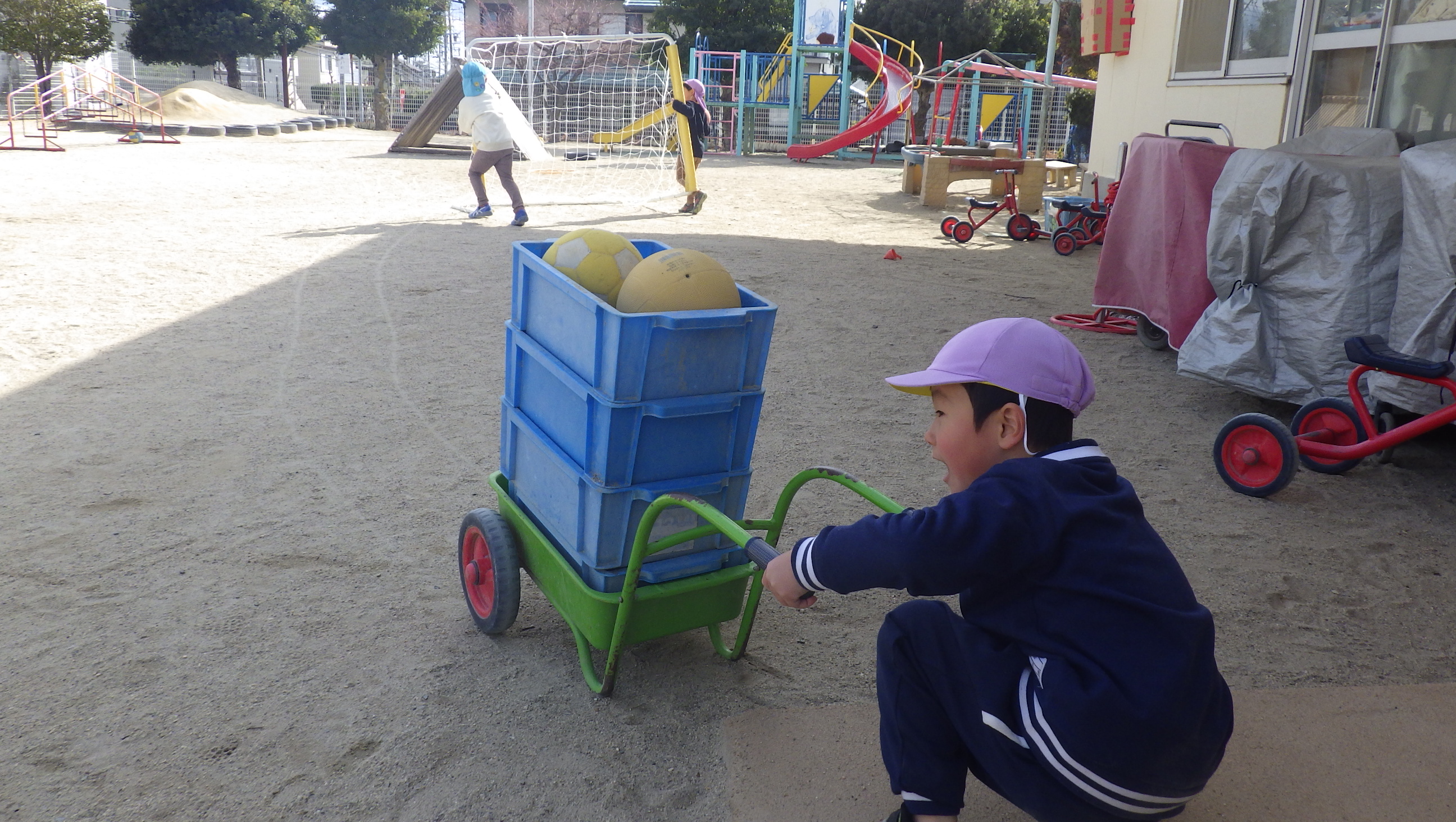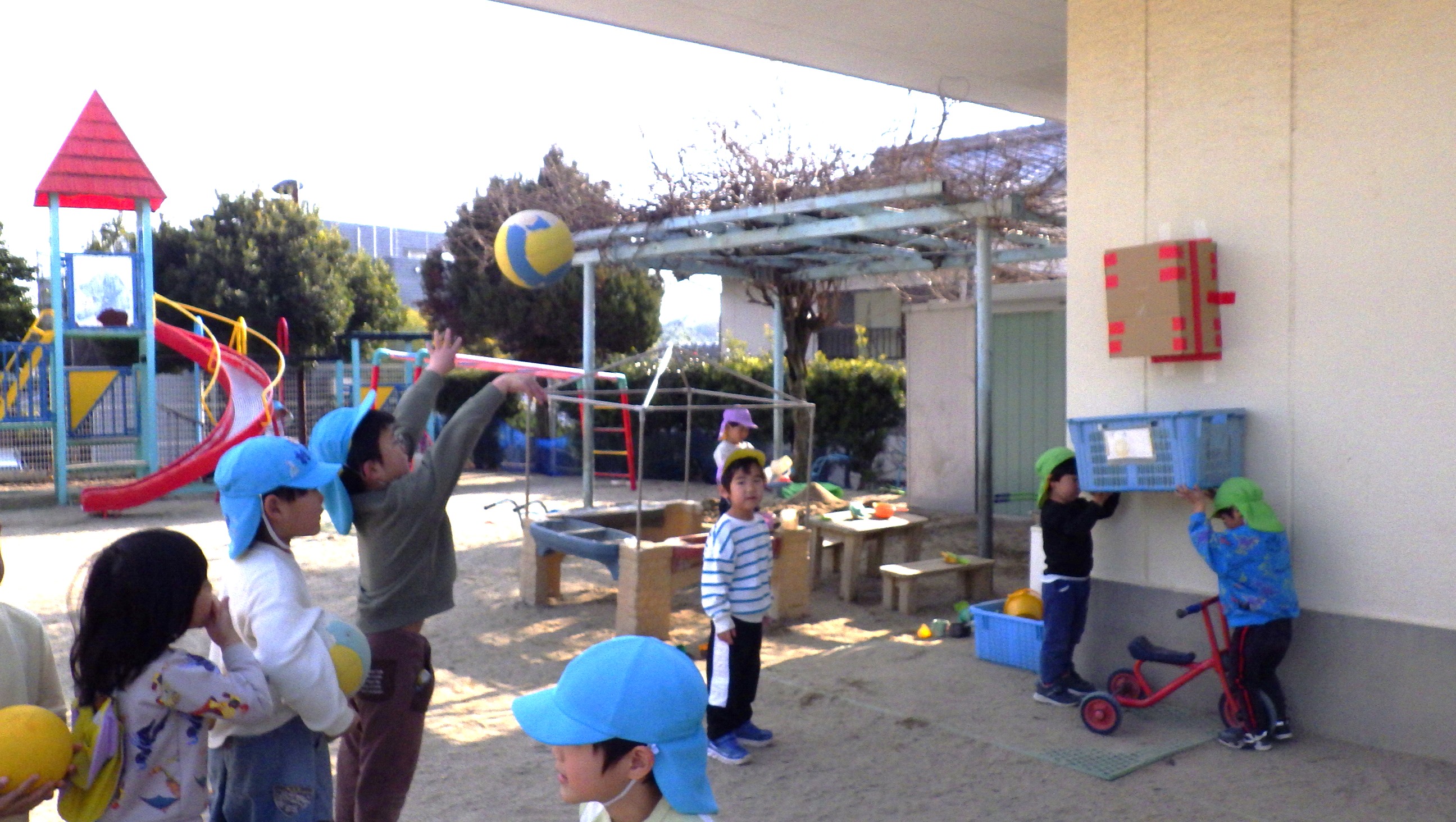 日中はお天気も良く、園庭でボールを蹴り合ったりして楽しんでいましたよ。