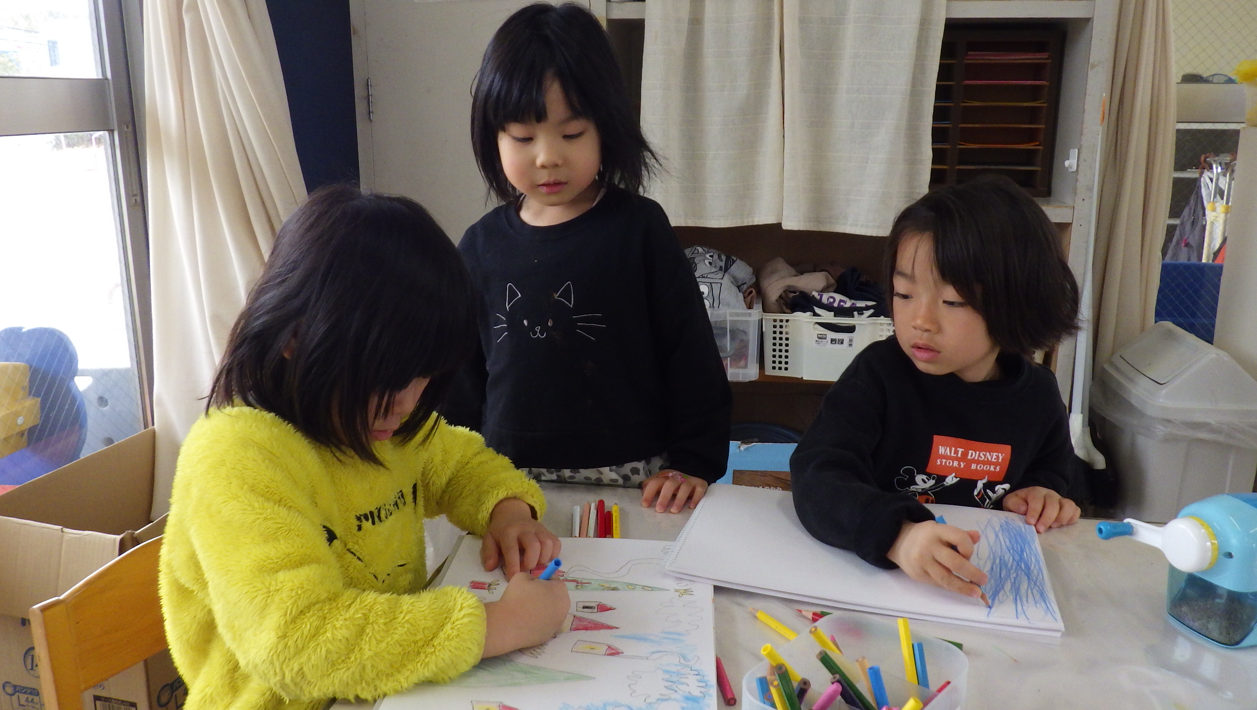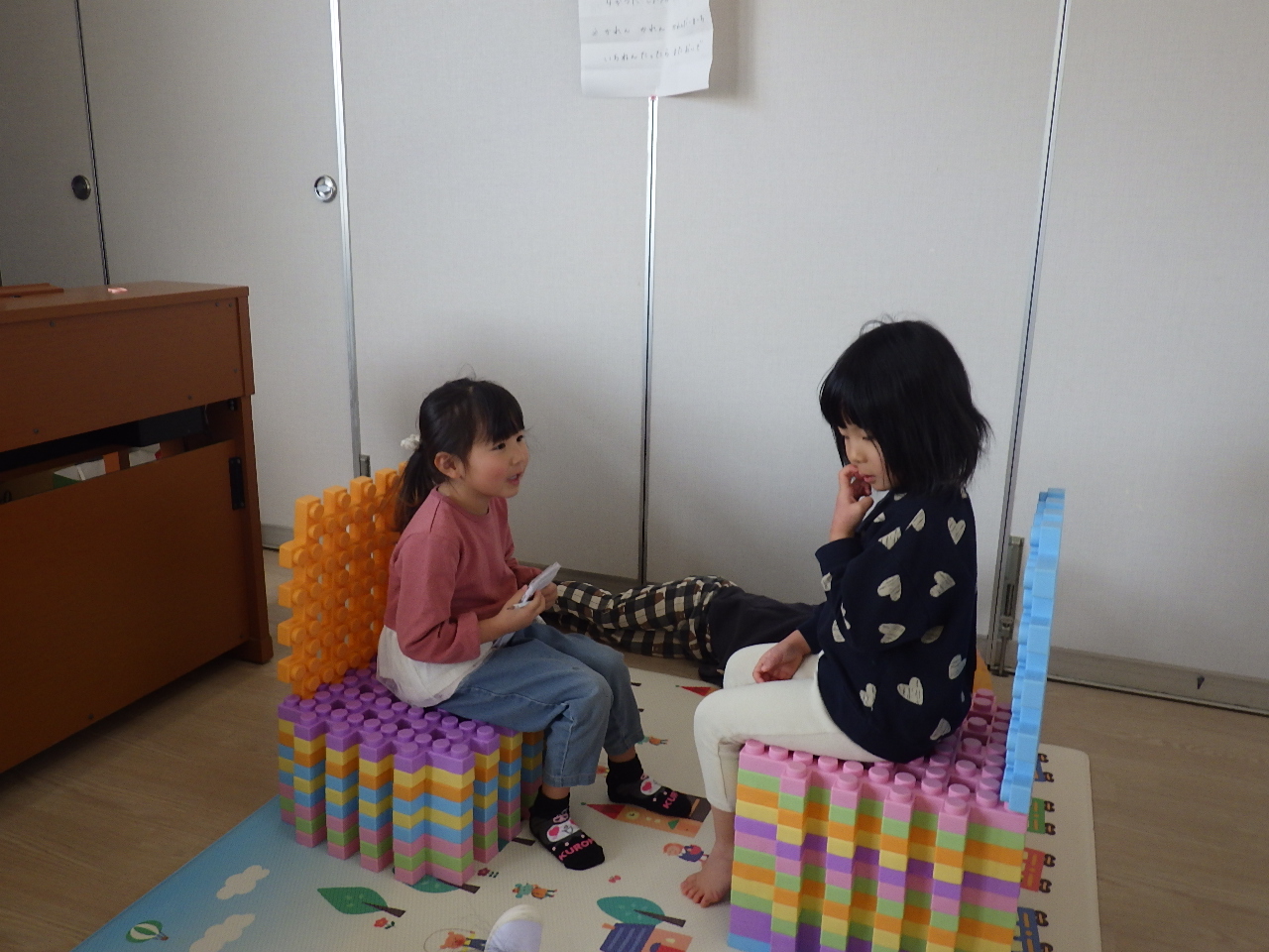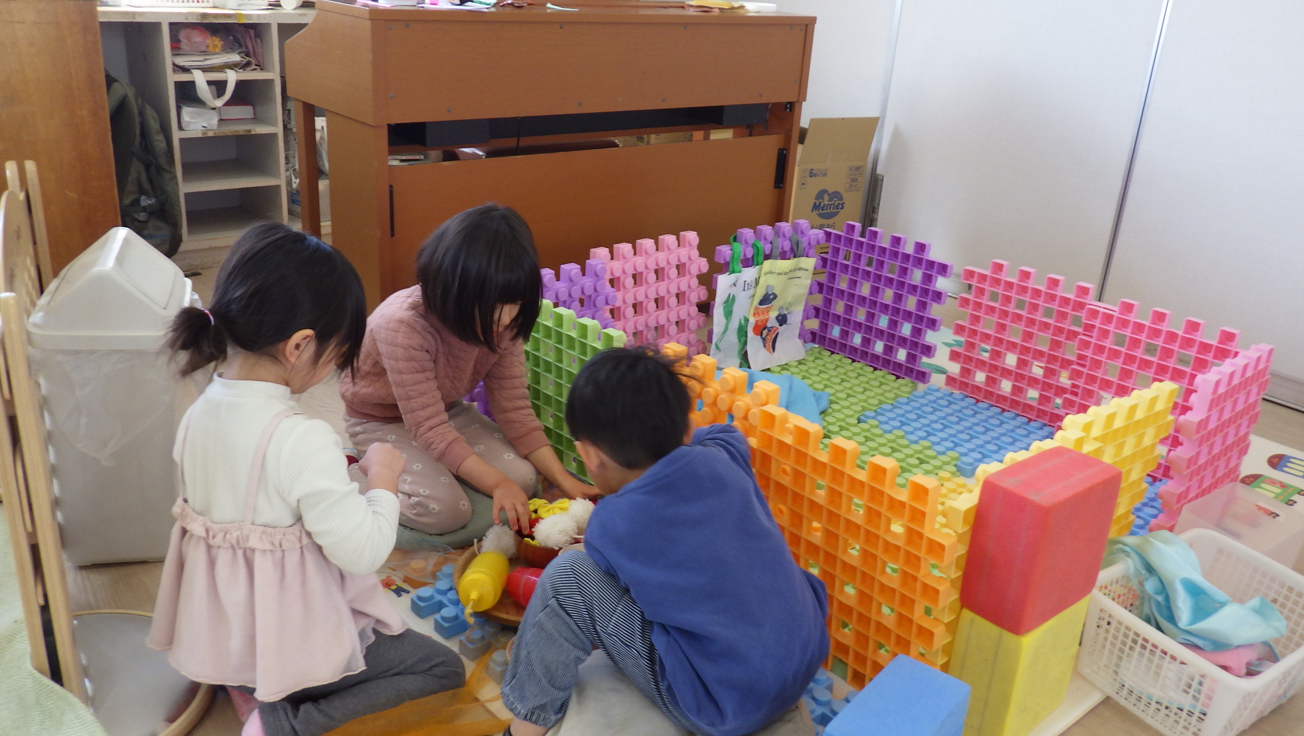 今日は出席人数が少なくてさみしい様子のこどもたちでした。少人数なことをチャンスとばかりに保育士に「絵本読んで~!」「○○一緒にしよう♪」など一緒に遊びを楽しんでいましたよ。
