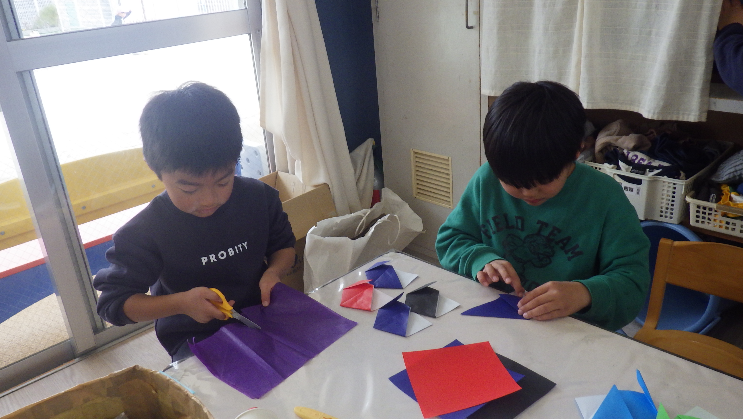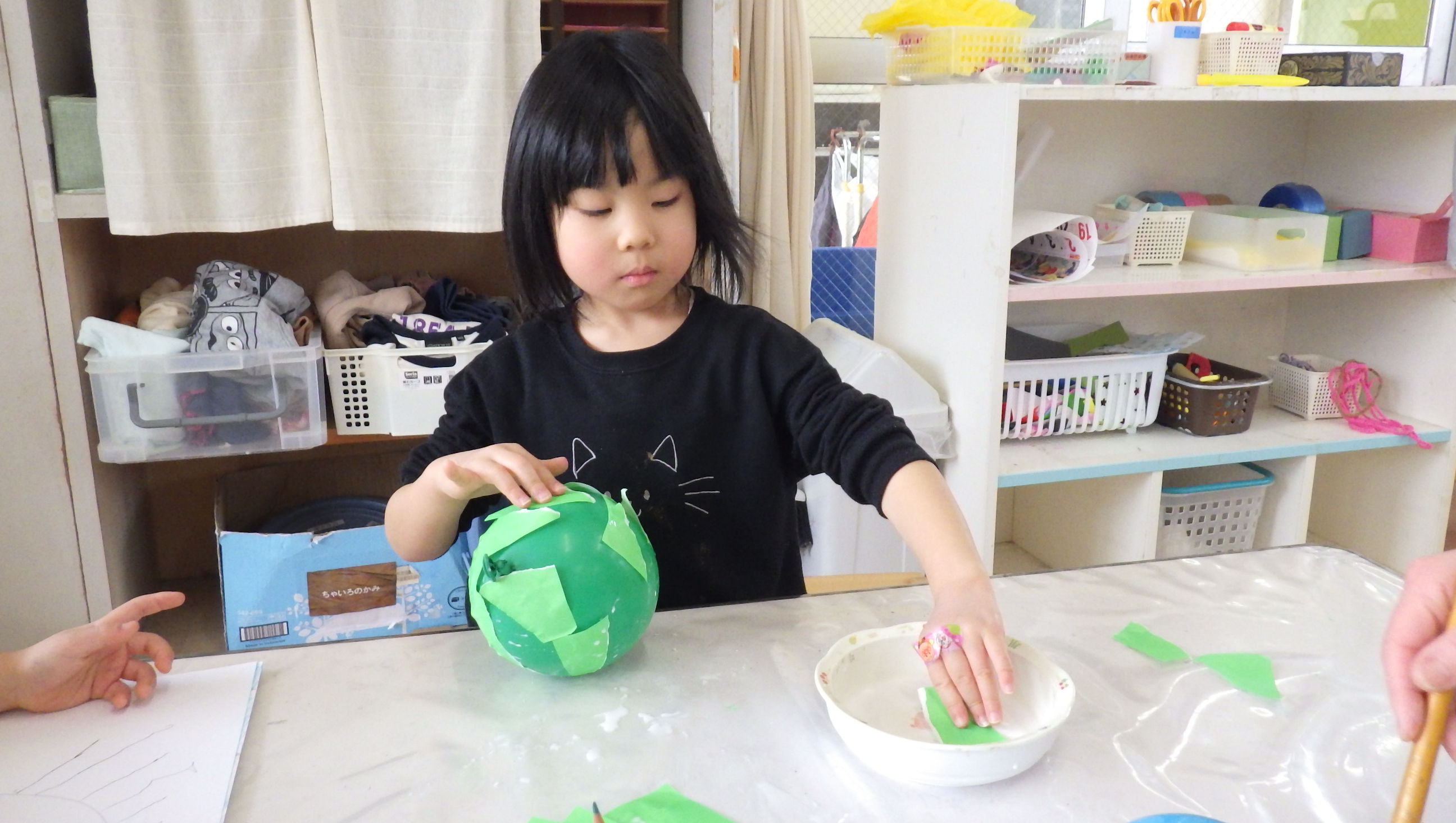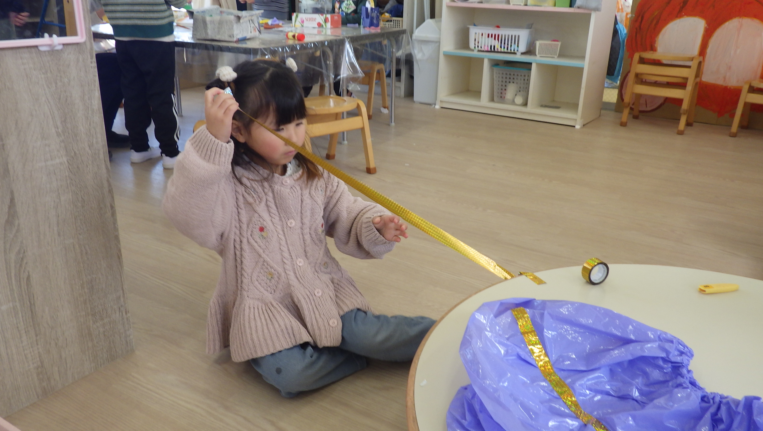 お部屋ではお店屋さんごっこの品物を作っていて、始めは慣れない手つきだったのですが何個か作っているうちに一人でどんどんできるようになっていました!できることが一つ増えて嬉しそうでしたよ♪