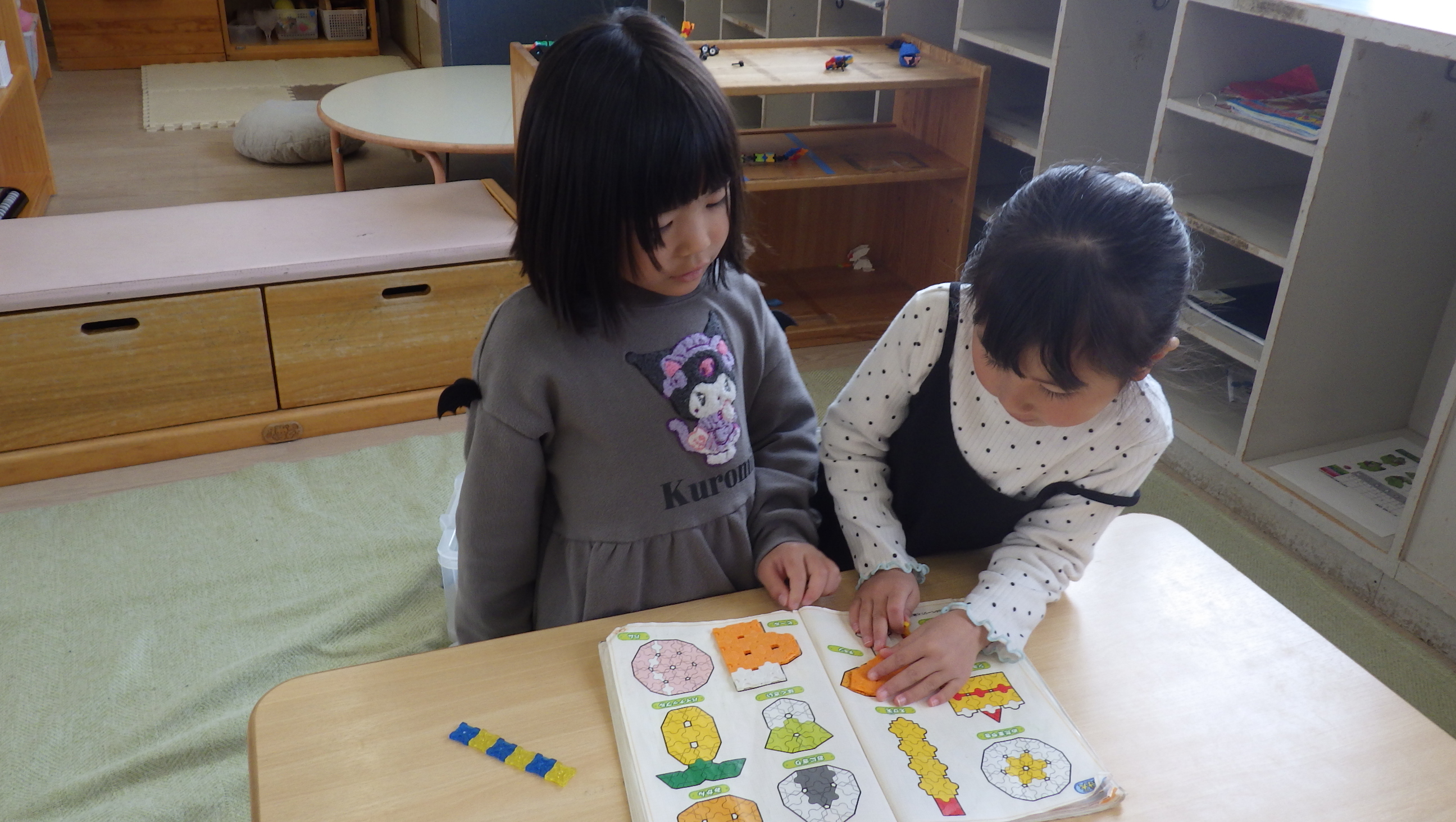 年中さんは二拍子・三拍子・四拍子に合わせて2~4人のグループに分かれるのですが、個々のメンバーを覚えておくことが難しくてリズムが変わる度にピアノの音を聞いて考えていましたよ。