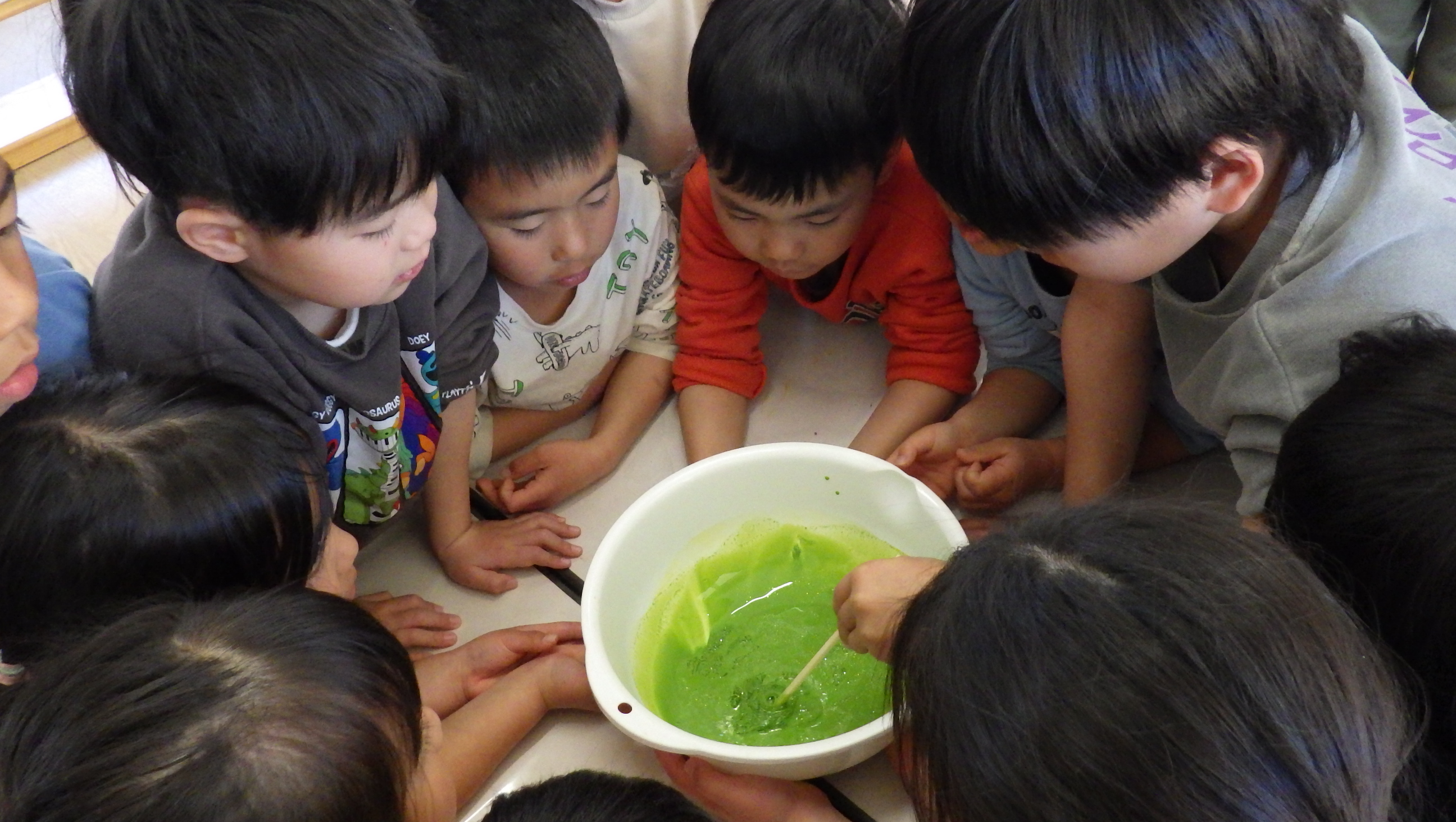 スライムを作る準備をしていると楽しそうな雰囲気を察して一人また一人と増えていき、大人数になっていました!!