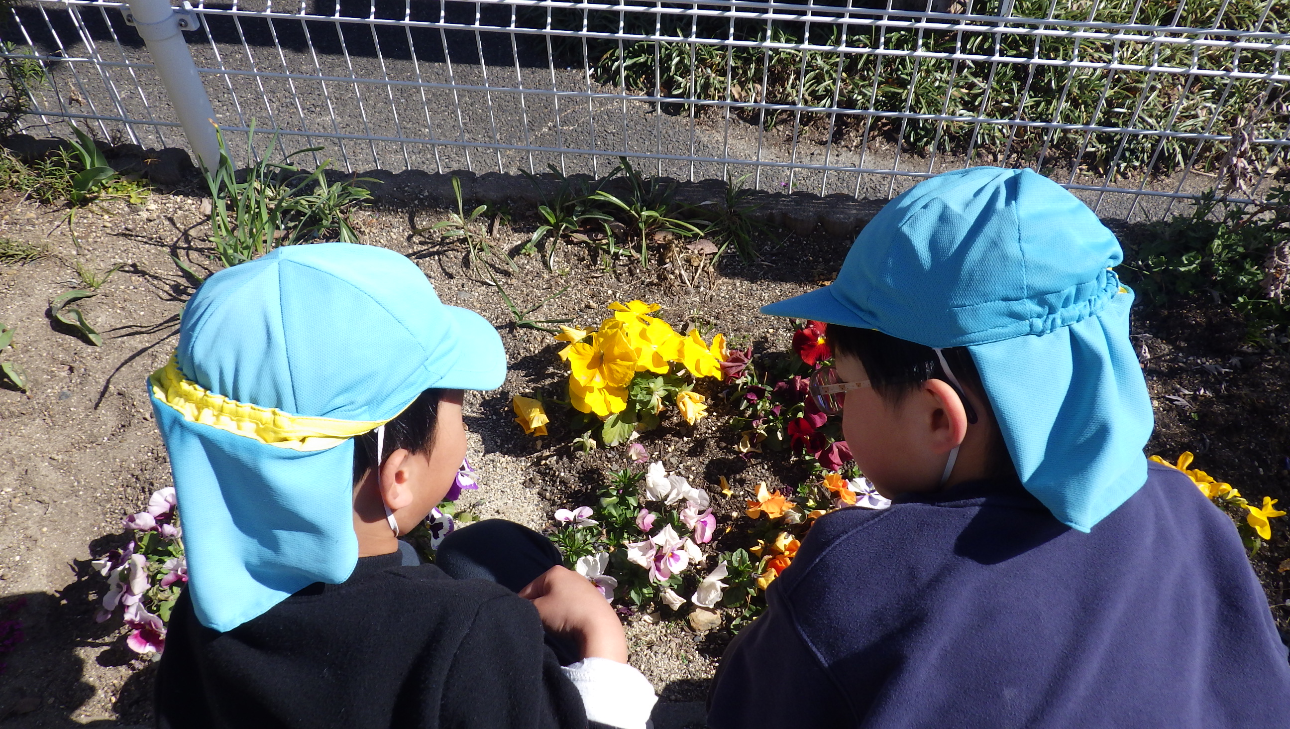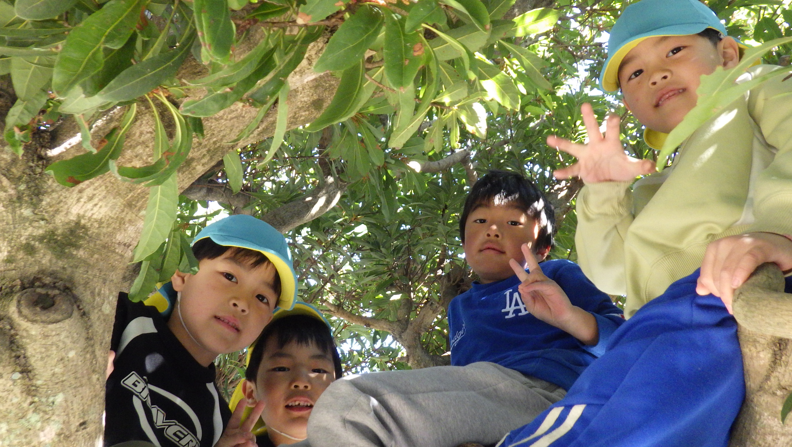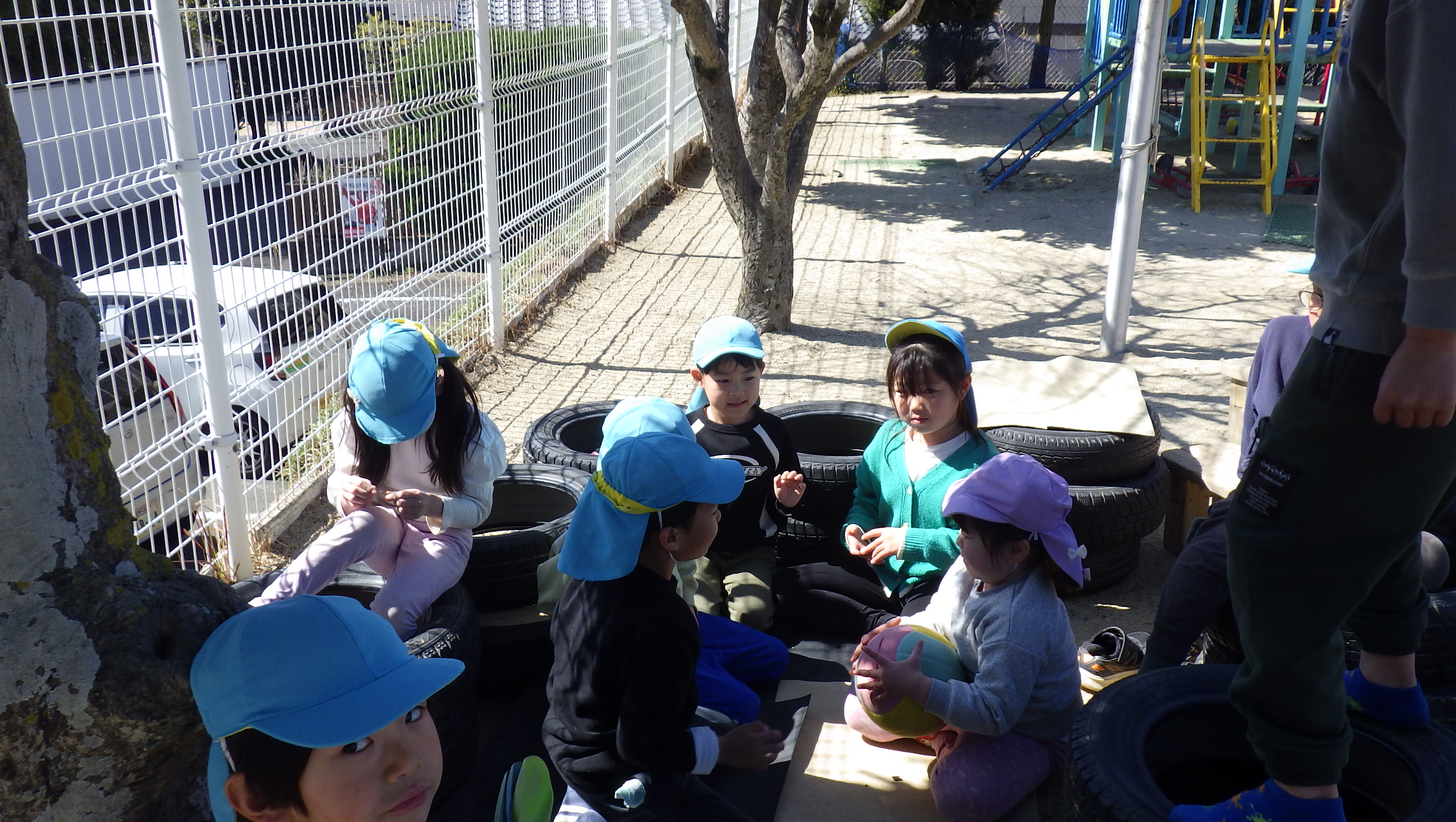 今日は朝から暖かく園庭でまったりしている子が多かったです。サラ粉でかたまりを作ったり、タイヤでお家を作ってみんなで日向ぼっこをしたり、咲いているお花を一緒にみたり…春が近くまで来ているのを感じました♪また、木登りをしている子は数人で上に登って楽しそうにお話をしていました。どんな話をしているのかと近くで聞いていると、好きなお菓子の話で盛り上がっていました♪かわいいですね~(⌒∇⌒)