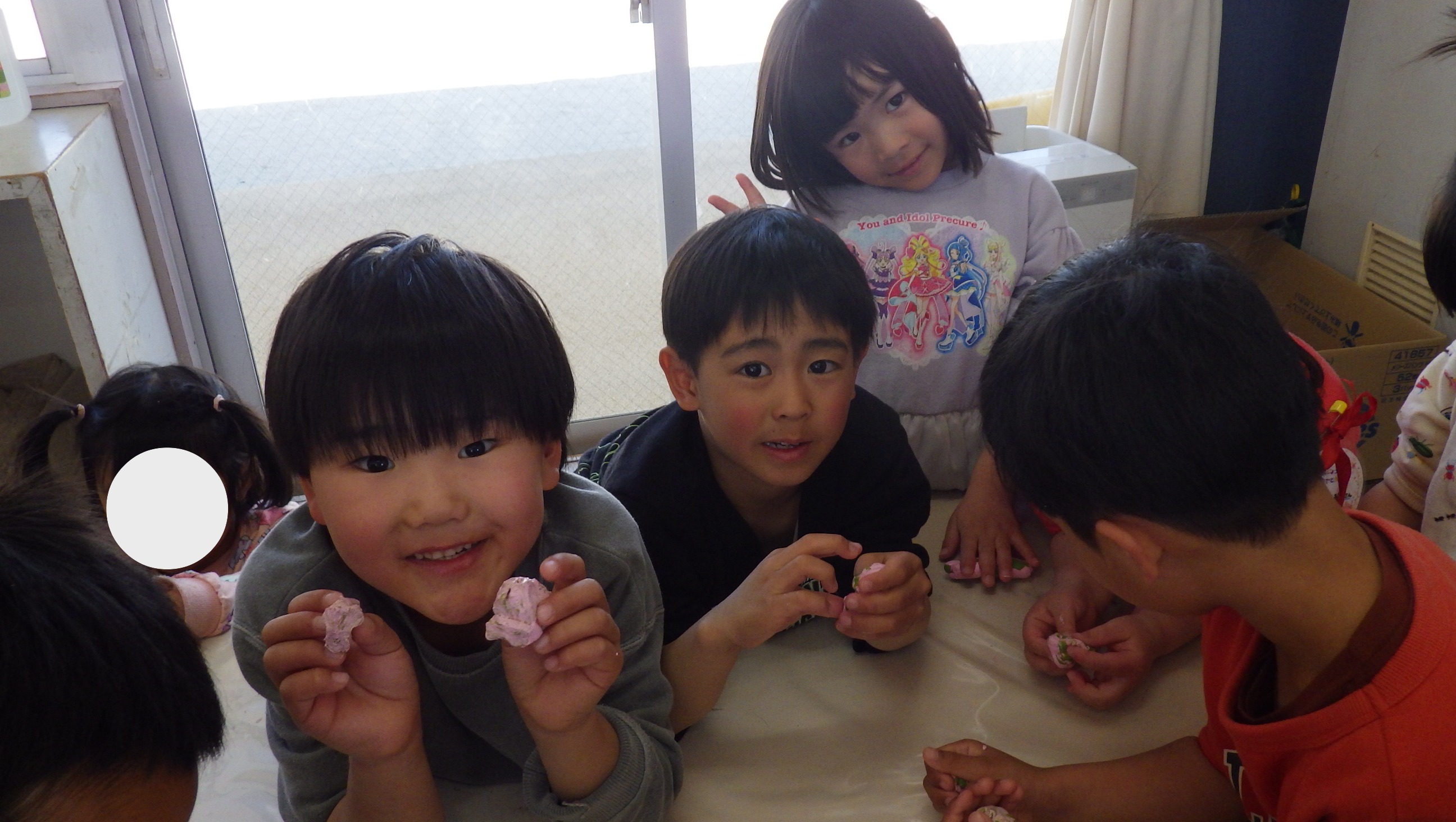 午後からはピンクのスライムを作って抹茶色と桃色の春らしいスライムになりましたよ♪