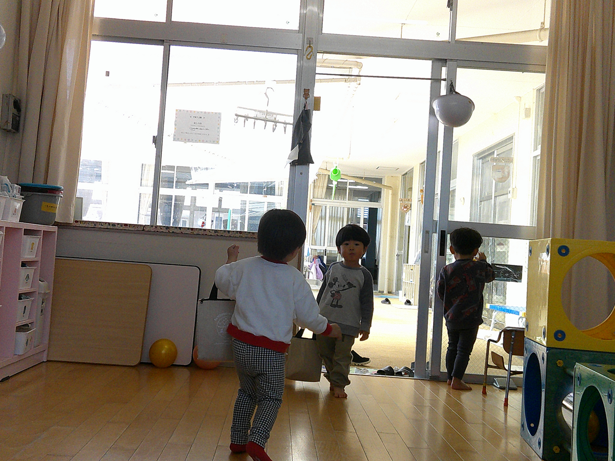 今日は年長さんが卒園式の練習をする姿をみて、「見に行く」と観客になってくれていました。