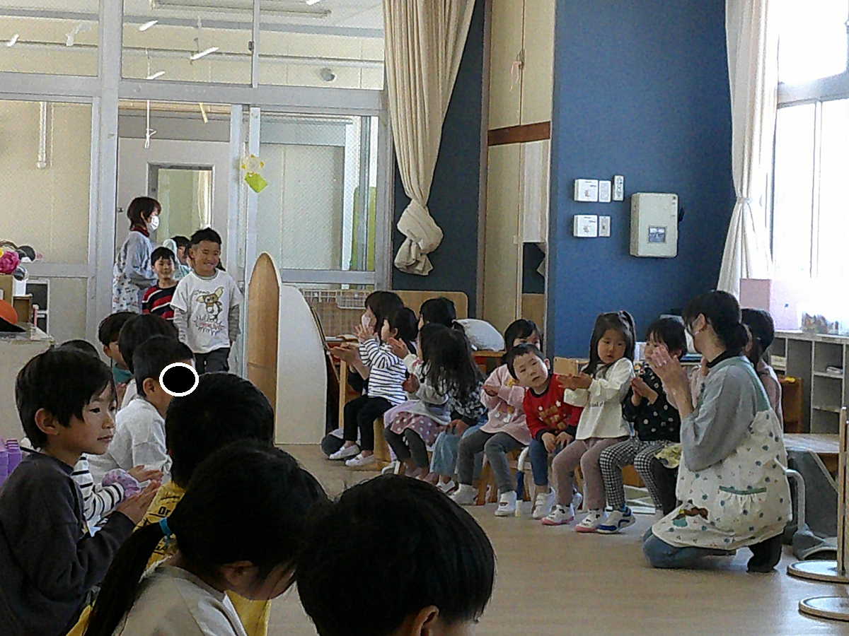 長い事座って見てられるかな…?と思っていましたが、年長さんたちが入場するときなどには拍手をしたり「すごっ!」と声を出したりしてとても集中して最後まで見ていて驚きました!