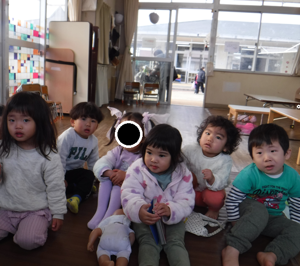 給食の前などの少し時間がある際に、絵本や紙芝居をここ最近読んでいるからか大好きになってきた様子のこどもたち。今日は朝から事務所に行って、「どれにしようかな~?」と一個ずつ出して絵を見ながら選ぶのです。「僕はこれ!私はこれ!」とそれぞれ好きな紙芝居を選んで部屋に戻り順番に読んで楽しみました。『おはようあそび』という話を読んだ後には、みんなで声をそろえて元気に「おはようございます」と挨拶し合いましたよ。