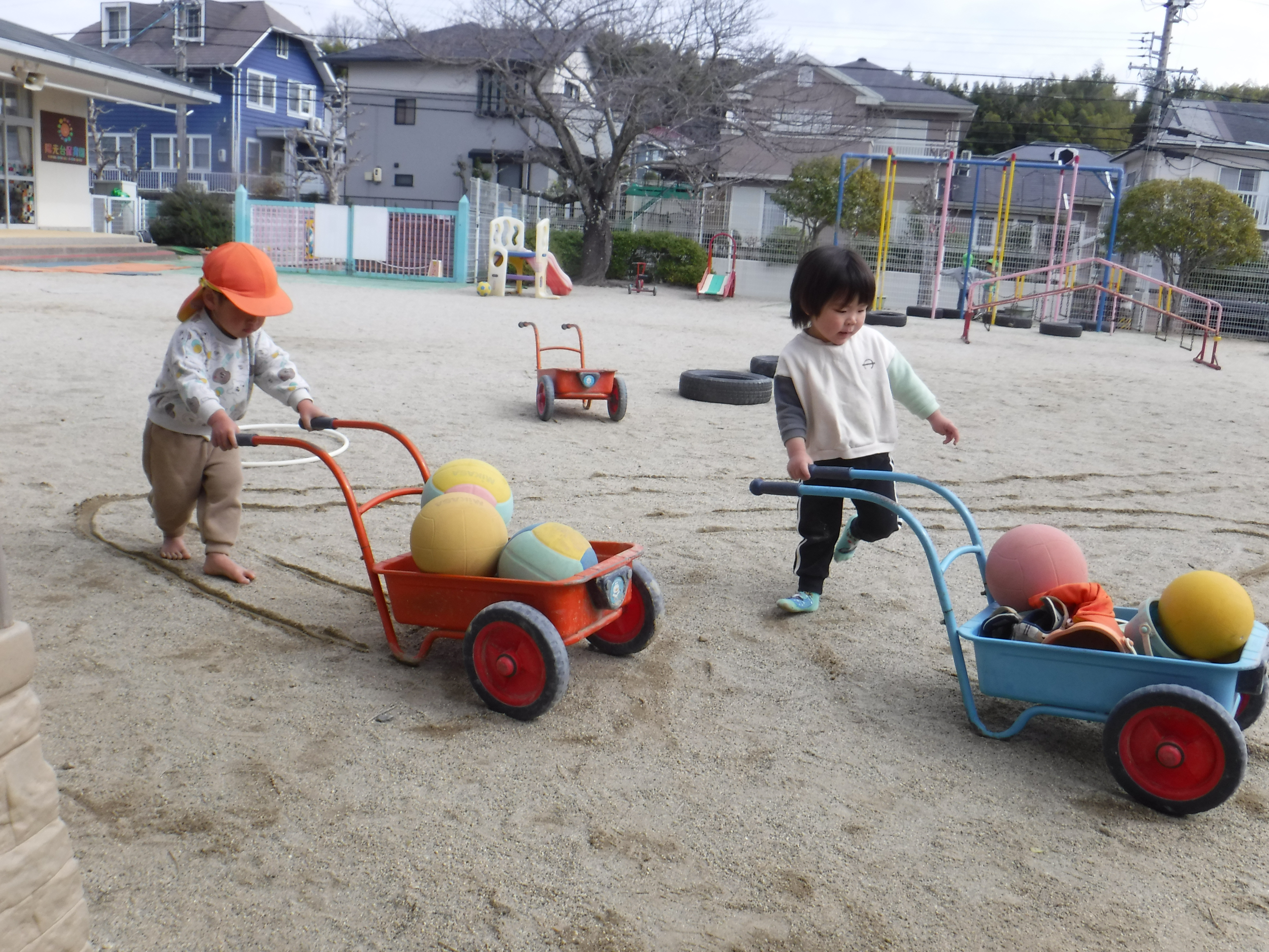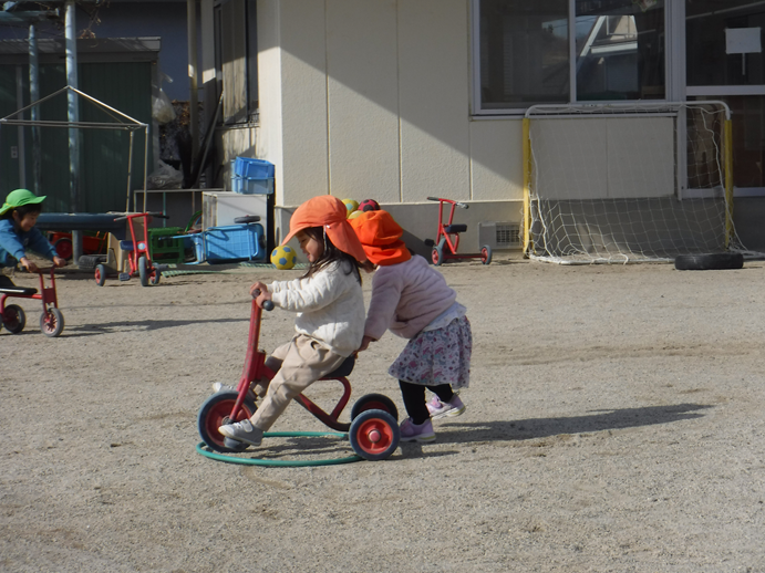 三輪車をおしあったり、砂場でご馳走を作ったりそれぞれ好きな遊びを思う存分に楽しんでいましたよ。気の合う友だちを見つけて、同じ空間での遊びを楽しむ姿が本当に増えてきたように感じ、日々嬉しく思っています!♡