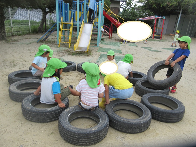 今日も汗びっしょっりになるまで遊ぶそらさん♪昨日の夕方からトイレごっこにはまってしまい、今日もタイヤを並べてはトイレに見立てて「おしっこでたよー」「うんちしてくるわ!」と笑い合いながらやり取りをしていました。石や葉っぱを手で持ち、おしりからぽとんと落ちたように見えるようにしているのがリアルで面白く「なにしてるの~(笑)」と声をかけると「アハハ」と大盛り上がりでした♪