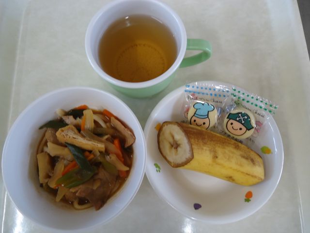 【豚汁】豚肉・人参・大根・里芋・しめじ・ねぎが入りました。