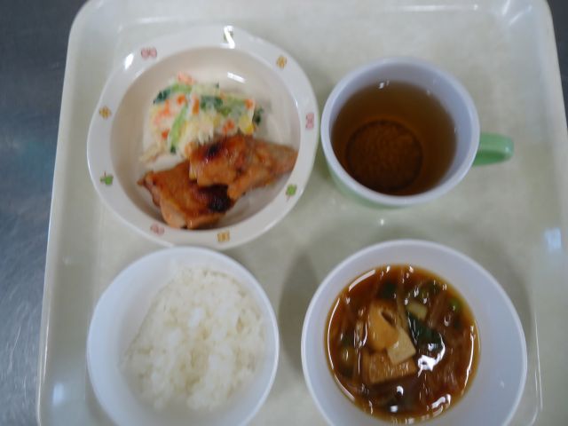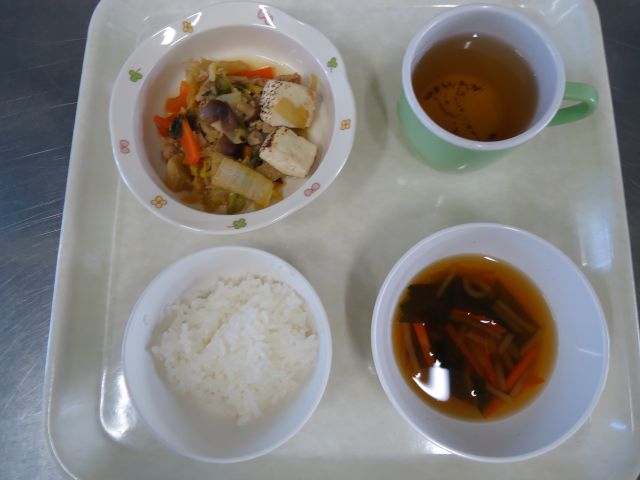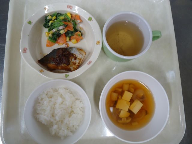 【すまし汁】玉ねぎ・しめじ・木綿豆腐が入りました。