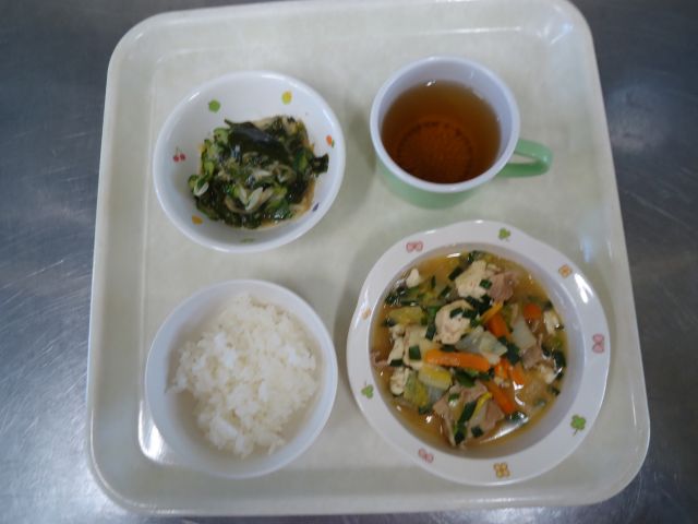 甘めでだしのうま味がきいたおでんと甘酸っぱい和え物で今日もたくさんの栄養を摂っていただきました。